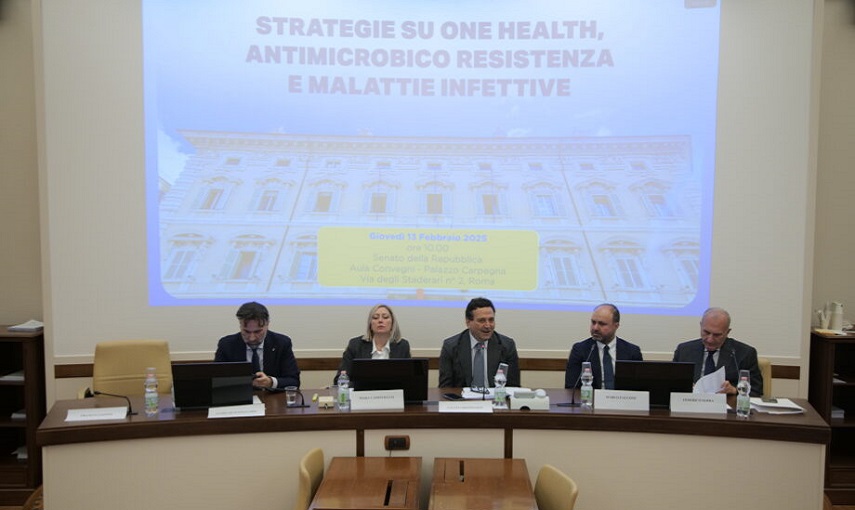 L’incontro “Strategie su One Health, antimicrobico resistenza e malattie infettive” è stato introdotto dal senatore Fausto Orsomarso e dal senatore Franco Zaffini. Sono poi intervenuti: Maria Rosaria Campitiello, capo Dipartimento Prevenzione del ministero della Salute; il professor Marco Falcone; Andrea Lenzi, presidente CNBBSV della Presidenza del Consiglio dei ministri; il senatore Guido Quintino Liris; Robert Giovanni Nisticò, presidente Aifa; il senatore Giovanni Satta; la senatrice Daniela Sbrollini.