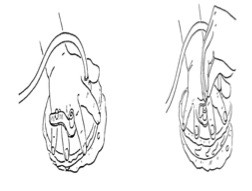 - Tagliare e rimuovere il filo di sutura che fissa il drenaggio