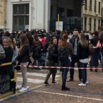Un folto assembramento di ragazzi si è riunito davanti alle Molinette in attesa di essere ricevuti da qualcuno.