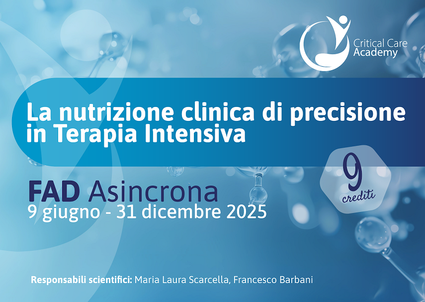 Sulla piattaforma Dafne è disponibile il corso Ecm Fad gratuito “La nutrizione clinica di precisione in terapia intensiva”, attivo dal 9 giugno al 31 dicembre 2025. L’evento formativo, destinato anche agli infermieri, attribuisce 9 crediti Ecm.
