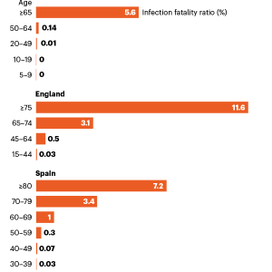 Questo risultato è stato utilizzato per calcolare un IFR globale dell’Inghilterra pari allo 0,9%, ovvero 9 decessi ogni 1.000 casi. L’IFR era prossimo allo 0% per i soggetti di età compresa tra i 15 ed i 44 anni, aumentando fino al 3,1% nella fascia di età 65-74 anni. Per gli over 75 invece l’IFR si è attestato all’11,6%.