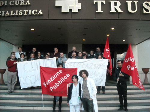 E’ ciò che sta succedendo a Ottaviano, alla clinica Trusso, una clinica enorme, 180 dipendenti, moderna, arroccata sulle ripide pendici del Monte Somma, versante nord del Vesuvio: è stata occupata dai lavoratori, rimasti senza stipendio.