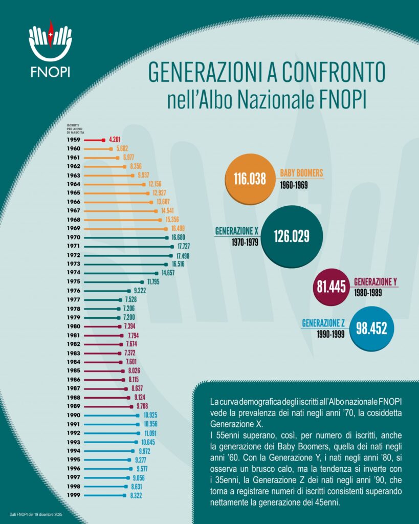 I dati FNOPI del 2025 disegnano una professione fortemente invecchiata: quasi la metà della categoria è tra i 51 e i 65 anni. Questa concentrazione determina una gobba pensionistica che, se non gestita con politiche di reclutamento e retention efficaci, rischia di ridurre la capacità assistenziale del SSN. Inoltre, potrebbe aumentare il carico sulle finanze pubbliche. Nei prossimi mesi servirà un piano condiviso tra istituzioni, ordini professionali e università per aumentare il ricambio generazionale. Così sarà possibile valorizzare la formazione e garantire la continuità delle cure.