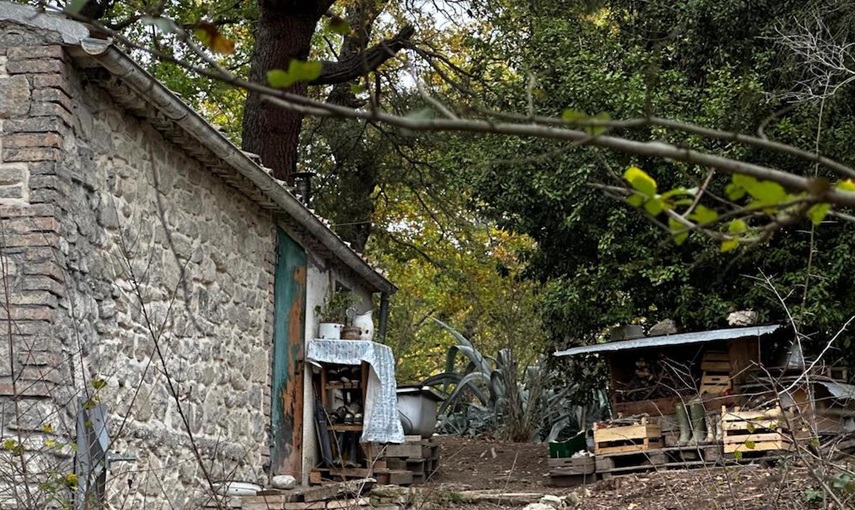 La casa nel bosco a Palmoli dove vivono Nathan Trevallion e Catherine Birmingham a cui oggi il Tribunale per i minorenni di L'Aquila ha disposto la sospensione della potest‡ genitoriale dei tre figli minori, fra i 6 e gli 8 anni, che vivono con loro in un rudere fatiscente e privo di utenze e in una roulotte in provincia di Chieti. Disposto anche l'allontanamento dei bambini dalla dimora familiare e il loro collocamento in una casa famiglia e nominato un tutore provvisorio dei minori, l'avvocata Maria Luisa Palladino. ANSA/ANTONELLA SALVATORE