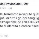 Grande solidarietà delle popolazioni colpite dal terremoto. Dopo L’appello dell’Avis Lazio e Rieti ripresi nel nostro articolo (VEDI). Le immagini in tempo reale nei tweet di @Alessio_DeMarco e @daniele_dav