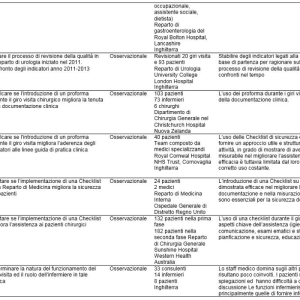 Infine, l’eterogeneità dei contesti di studio, intesa come variabilità di governance clinica, rispetto a: tipologia di pazienti/patologie studiate (tipologia clinica del malato, severità della malattia, presenza di comorbilità) e caratteristiche della struttura sanitaria (organizzazione, stili di leadership, livello di formazione dei professionisti), potrebbe spiegare le differenze nei risultati fra i vari studi.