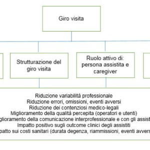 Il giro visita è una prassi consolidata che affonda le sue radici in epoche remote, risultando essere una componente chiave delle attività sanitarie, in grado di consentire ai professionisti l’assunzione della presa di decisioni assistenziali del paziente e di pianificare le attività che permettono il normale andamento dei reparti di degenza. Tuttavia, spesso è condotta in maniera destrutturata, svalutandone l’importanza e non riconosciuta come parte integrante della programmazione e gestione clinico-assistenziale (Francis Report, 2013).