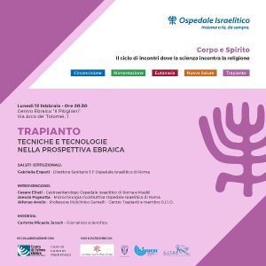 Questo ciclo di iniziative è intitolato Corpo e Spirito e gli argomenti affrontati sono: circoncisione, nutrizione, medicina di genere, eutanasia e maternità surrogata. Hanno partecipato a queste conferenze medici, rappresentanti istituzionali, rappresentanti religiosi e professionisti, alimentando il dibattito intellettuale e scientifico. Nel quinto e ultimo incontro, in programma lunedì 12 febbraio alle 20:30 presso il Centro Ebraico “il Pitigliani” (via Arco de’ Tolomei, 1) si parlerà di TRAPIANTO – Tecniche e tecnologie nella prospettiva ebraica. Ecco gli oratori che prenderanno parte al convegno: