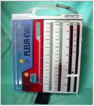 - PLEUROMED, catetere costituito da un tre quarti metallico con inserito il catetere toracico, termosensibile, a lume minimo (Ch 8/10), al termine del tubo c’è la presenza di un raccordo a tre vie a cui è possibile raccordare il sistema di connessione, applicato in caso di Pneumotorace e Versamento pleurico sieroso. Ha il vantaggio d’essere poco traumatico di facile gestione al domicilio e di consentire l’introduzione di farmaci e lo svantaggio che essendo a lume minimo può facilmente ostruirsi (coaguli).