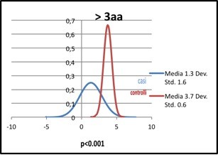 CONFRONTO TRA CURVE GAUSSIANE RELATIVE AI CASI ED AI CONTROLLI
