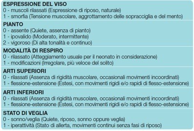 La misurazione del dolore è importante al fine di renderlo oggettivamente quantificabile utilizzando strumenti adeguati, efficaci e validati, nonché facilmente applicabili ed accettabili da parte del bambino. In particolare il dolore può essere misurato attraverso parametri fisiologici, che si modificano durante la percezione del dolore (tachicardia, tachipnea, diminuzione della Sao2 e Po2 con aumento della Pco2 , aumento della pressione arteriosa ecc.), e parametri comportamentali (pianto, espressione facciale, movimenti corporei, modificazioni emozionali, postura ecc.). Le scale algometriche più utilizzate in tutto il mondo si basano sulla valutazione dei parametri comportamentali. A seconda dell’età del bambino vengono considerati parametri e scale di misurazione differenti. Nello specifico in età neonatale la scala algometrica più utilizzata a livello internazionale è la scala NIPS (neonatal infant pain scale) in quanto di estrema semplicità e facile applicabilità. Essa utilizza, quali parametri per quantificare il dolore, l’espressione del viso, il pianto, la modalità del respiro, la motilità degli arti superiori ed inferiori, e lo stato di veglia. Ad ogni parametro viene attribuito un punteggio da zero a uno o da zero a due in modo tale che la somma totale può variare da zero a 7 a seconda dell’entità del dolore.