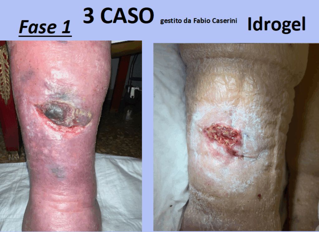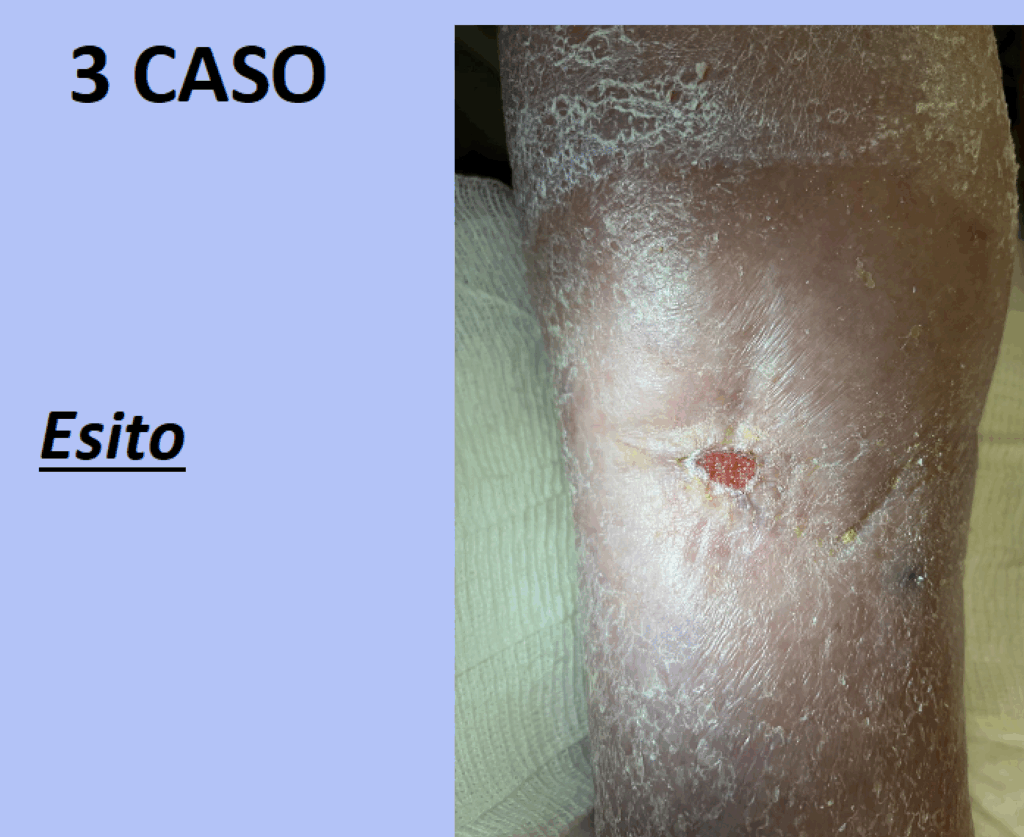 Il terzo caso (seguito e trattato da Fabio Caserini) è una paziente di 97 anni affetta da linfostasi con l’insufficienza venosa e arteriosa e sindrome da allettamento, presa in carico per il trattamento dell’ulcera emorragica con flittene sulla gamba destra.