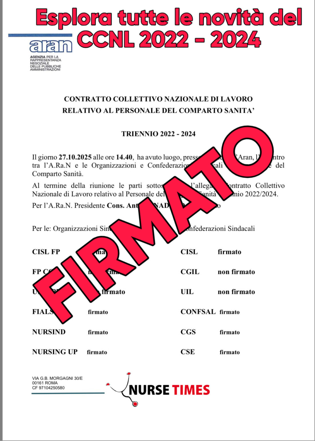 Firma ARAN: 1,784 miliardi stanziati, 581mila lavoratori coinvolti Il rinnovo del CCNL del comparto Sanità 2022–2024 è stato sottoscritto il 27 ottobre 2025...