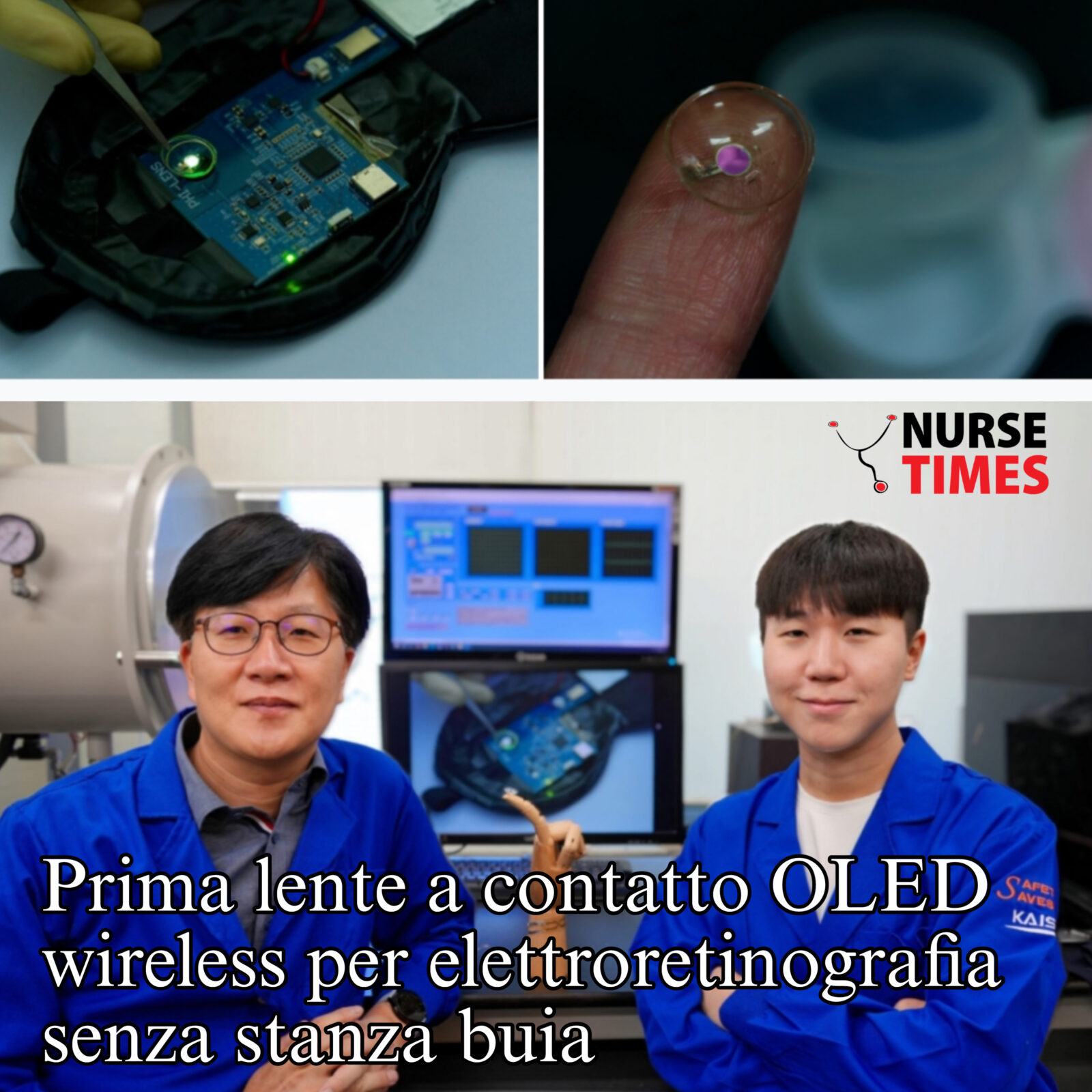 I ricercatori del Korea Advanced Institute of Science and Technology (KAIST) integrano un OLED ultraflessibile da 12,5 µm in una lente a contatto wireless per eseguire elettroretinografia (ERG), con ricarica a 433 MHz e test preclinici che ne confermano la sicurezza.