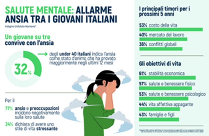Ansia, preoccupazione, stress. Sempre più giovani sperimentano quotidianamente emozioni negative, legate anche a una forte incertezza sul futuro. Un’epidemia silenziosa, confermata dall’ultima indagine dell’Osservatorio Sanità di UniSalute*, che ha interrogato un campione di mille italiani e italiane tra i 18 e i 40 anni.