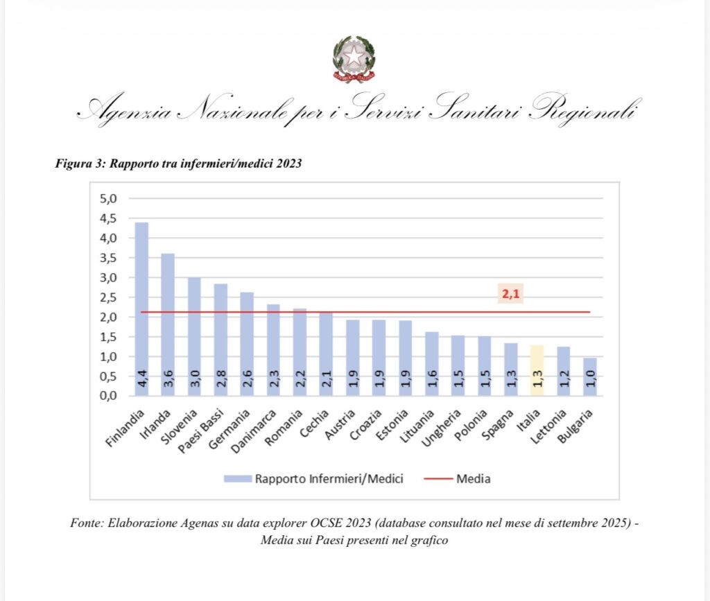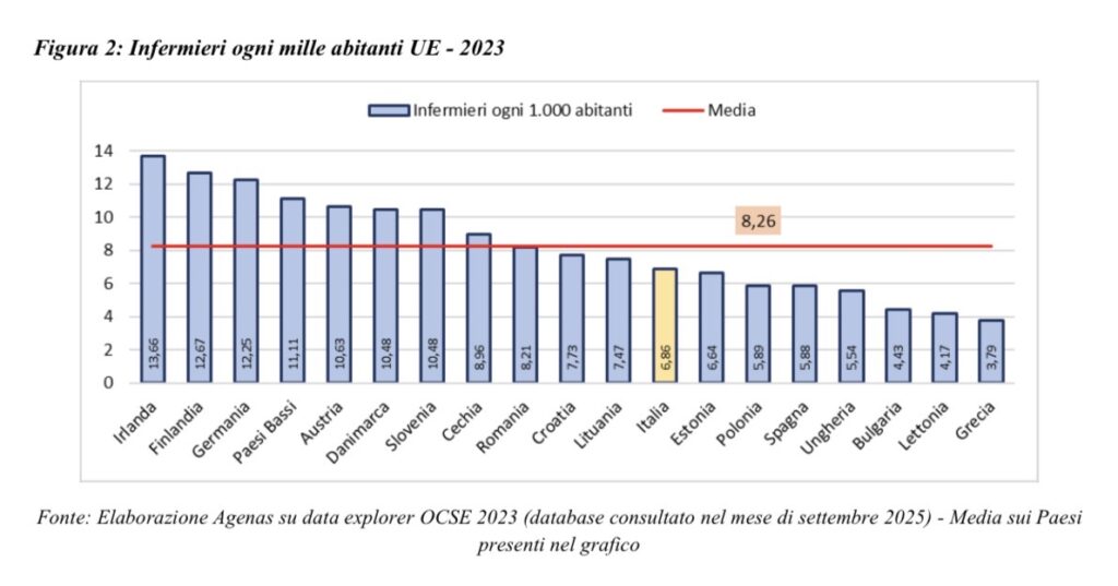 “Il gap numerico rispetto all’Europa non è solo statistico: ha impatti concreti sulla sicurezza delle cure e sul benessere degli operatori”, sottolinea Agenas nel suo rapporto annuale.