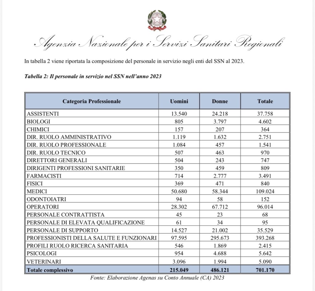 Il nuovo rapporto “Il personale del Servizio sanitario nazionale – Dati 2023” (vedi allegato), pubblicato da Agenas, conferma uno squilibrio cronico nella composizione della forza lavoro sanitaria: in Italia ci sono più medici che infermieri. Un’anomalia rispetto agli standard europei, che rischia di compromettere la sostenibilità dei servizi.