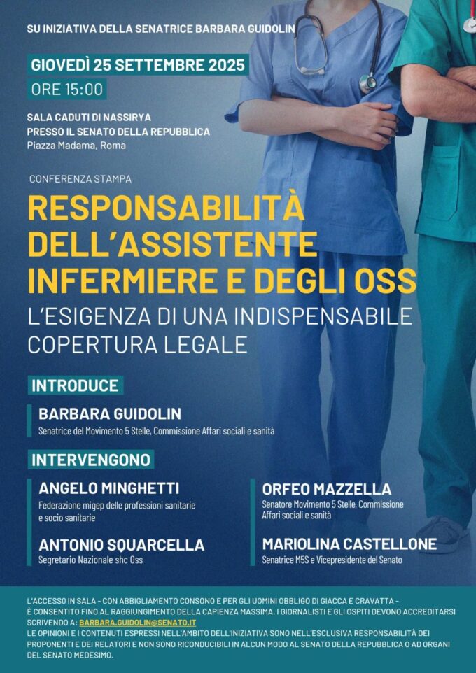 Sala Nassirya: confronto parlamentare su copertura legale, profili e formazione per OSS e Assistenti Infermieri in Italia Domani 25 settembre, presso il Senato...