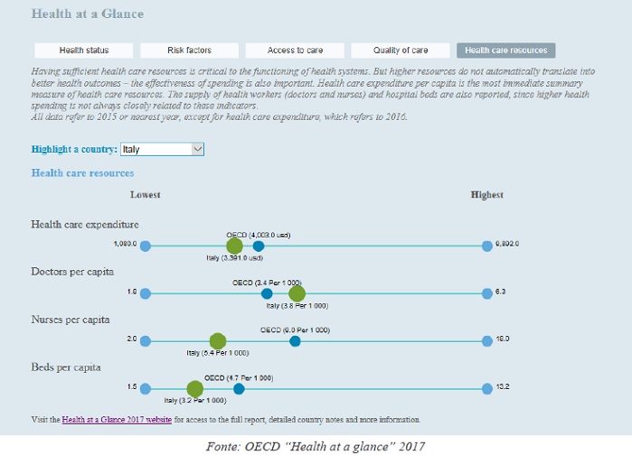 Lo ha dichiarato l’Ocse nel suo ultimo rapporto sulla salute 2017 (Health at Glance) offrendo anche evidenze grafiche della sua affermazione: